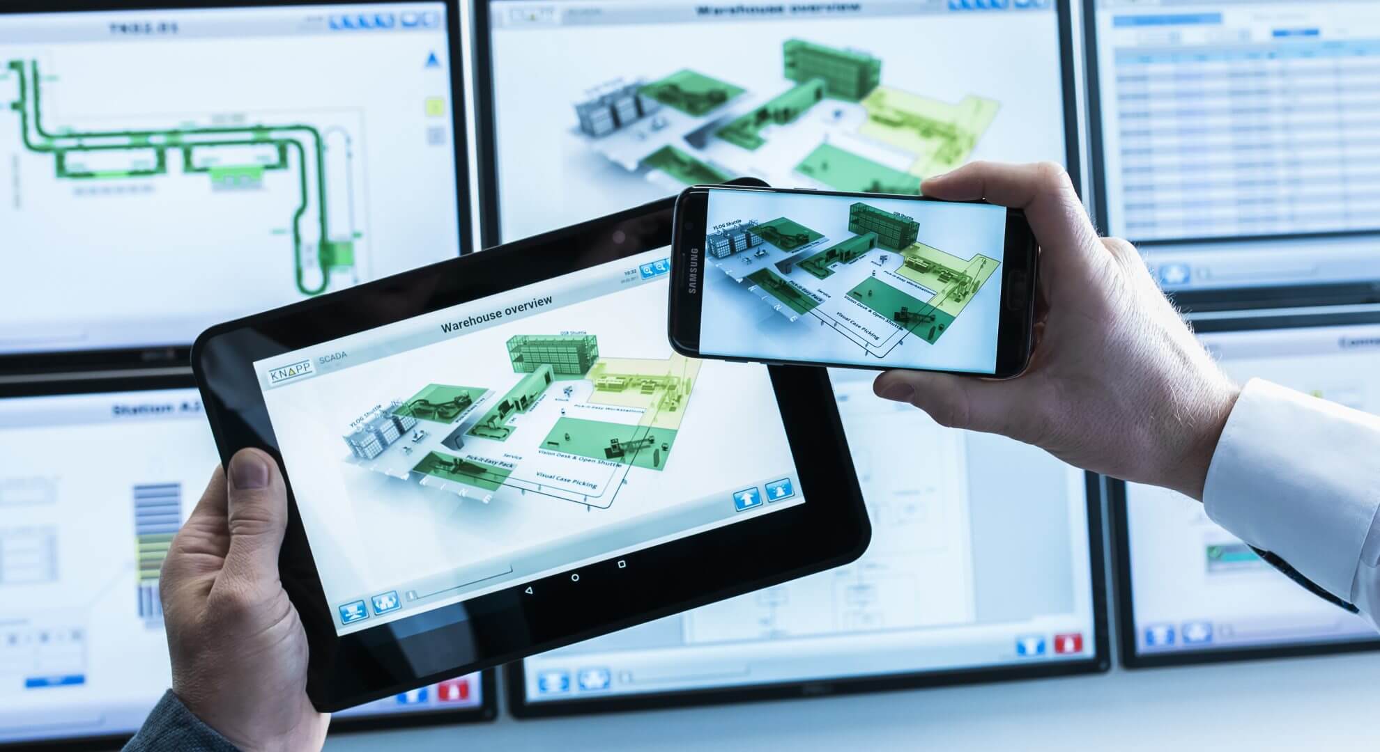 KiSoft SCADA es una solución de software de KNAPP que supervisa y controla máquinas, instalaciones y procesos y recibe mensajes de estado de la instalación en tiempo real y los visualiza claramente para el usuario. En el almacén, SCADA (Supervisory Control and Data Acquisition) constituye una ayuda en la supervisión central y operación eficiente de sistemas de transporte, tecnología de almacenamiento, robots y otros sistemas.