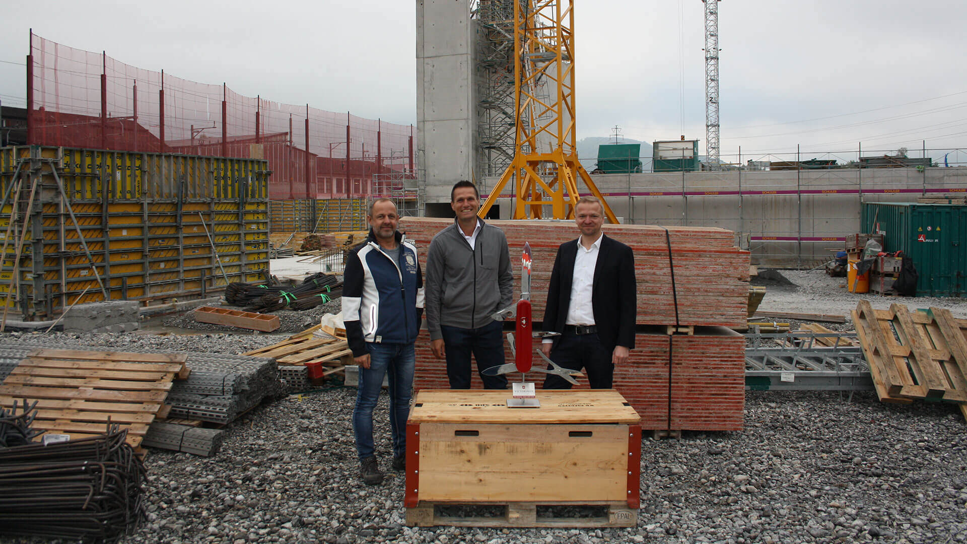 En entrevista Edgar Flecklin, Head of Logistics Victorinox, Dennis Haverkate, Global Supply Chain Business Process Owner Victorinox y Mario Rauch, Head of Software Consulting KNAPP AG, directamente desde la obra de construcción: