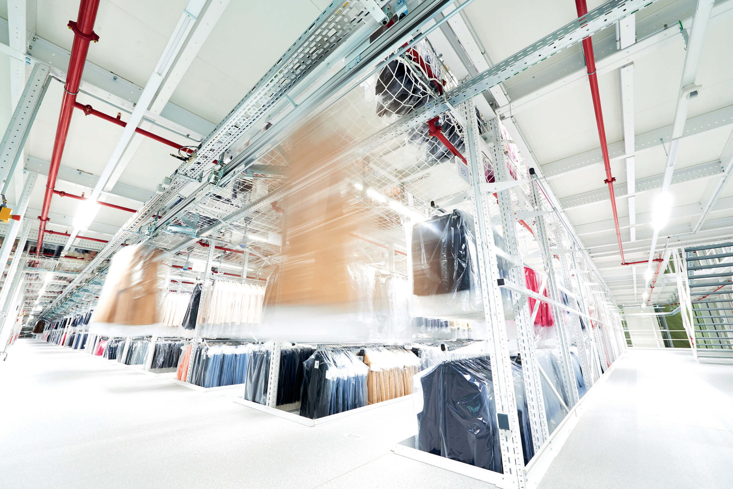 Kerntechnologien der hochautomatisierten Lösung sind das KNAPP-Lagersystem OSR ShuttleTM mit 84.000 Lagerplätzen für Liegeware sowie ein über fünf Ebenen gehendes Hängewarenlager für 500.000 Modeartikel und die Softwarelösung KiSoft, die alle Abläufe im Lager intelligent vernetzt und für hohe Flexibilität und Leistung sorgt.